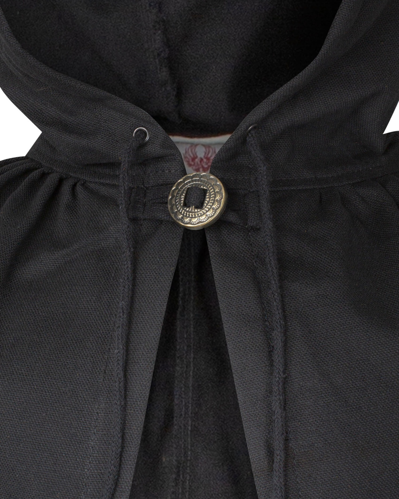 Aaron Cloak to ponadczasowy wybór dla każdego, kto szuka praktycznej i wygodnej peleryny na chłodniejsze lub deszczowe dni. Wykonana z solidnego płótna bawełnianego, zapewnia ochronę przed wiatrem i lekkim deszczem, a jednocześnie nie krępuje ruchów podczas gry, spaceru czy inscenizacji. Klasyczny krój z szerokim kapturem i prostym zapięciem na guzik sprawia, że płaszcz łączy w sobie funkcjonalność i prostotę.