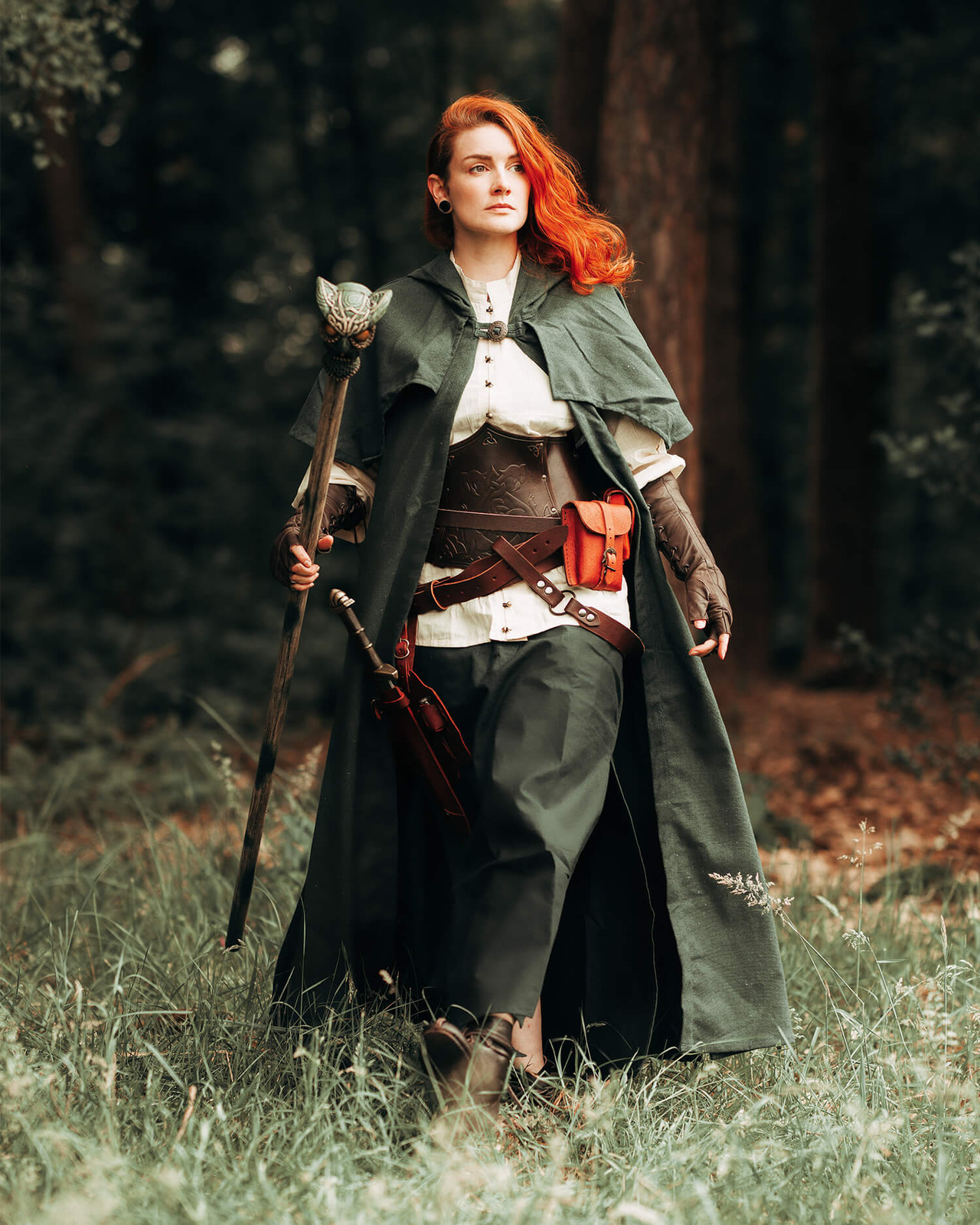 Abraxas Cloak jest niezwykle uniwersalny – noszony luźno wygląda szlachetnie, a spięty pasem nabiera bardziej bojowego charakteru. Doskonale pasuje do wielu archetypów postaci: od magów i kapłanów, przez poszukiwaczy przygód, aż po wojowników czy rycerzy. To płaszcz, który wzbogaca każdą stylizację i nadaje jej wiarygodności.