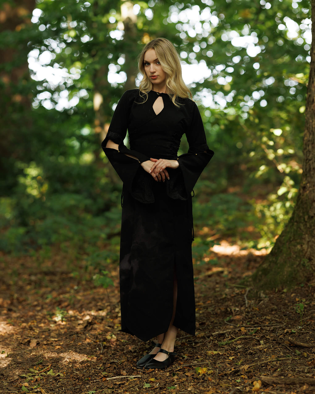 • Antaris Dress to elegancka suknia z serii Sorcery, która łączy wygodę i wszechstronność. Regulowane sznurowanie po bokach i ozdobne guziki nadają jej wyjątkowego charakteru – idealna zarówno na LARPy, jak i uroczyste okazje.