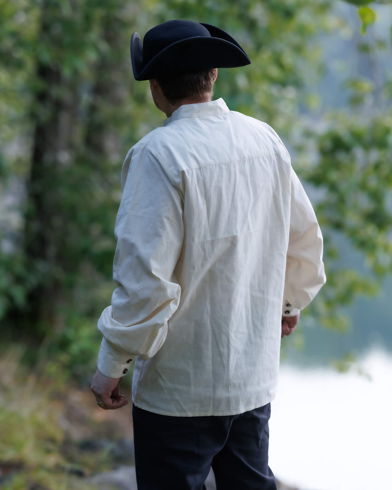 Luźne, przewiewne rękawy zakończone mankietami zapinanymi na guziki zapewniają komfort noszenia i swobodę ruchu. Wykonana w całości z oddychającej bawełny, koszula „Bartold” doskonale sprawdzi się w ciepłe dni – zarówno jako część stroju historycznego, jak i jako lekka koszula do codziennego użytku.