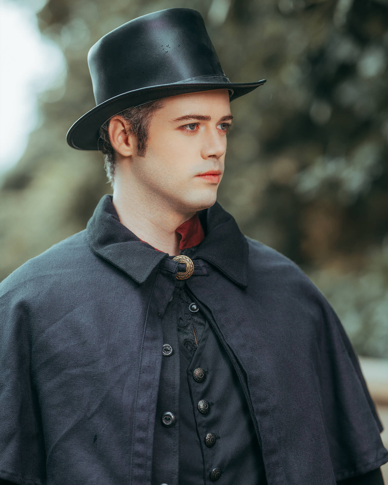 - Krótka peleryna zapinana z przodu na guzik. Chroni przed deszczem i chłodem, a jednocześnie stanowi stylowe uzupełnienie wielu kostiumowych stylizacji.