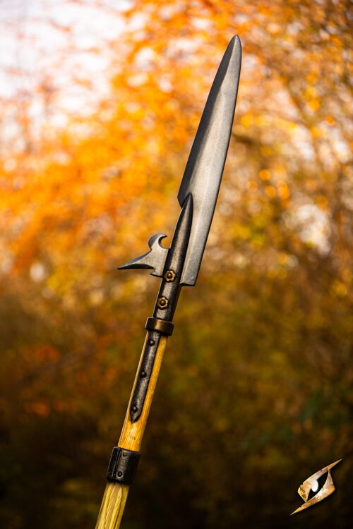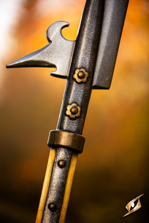 Element wykonany jest z wytrzymałej pianki, wzmocnionej rdzeniem z włókna szklanego, co zapewnia trwałość przy zachowaniu niskiej wagi. Powierzchnia pokryta lateksem została wykończona w sposób imitujący ciężką, zużytą stal, nadając całości realistyczny, bojowy wygląd. To idealny wybór dla każdego oddziału, który chce wyróżnić się na polu bitwy i nadać swojemu sztandarowi unikalny, inspirowany bronią charakter.