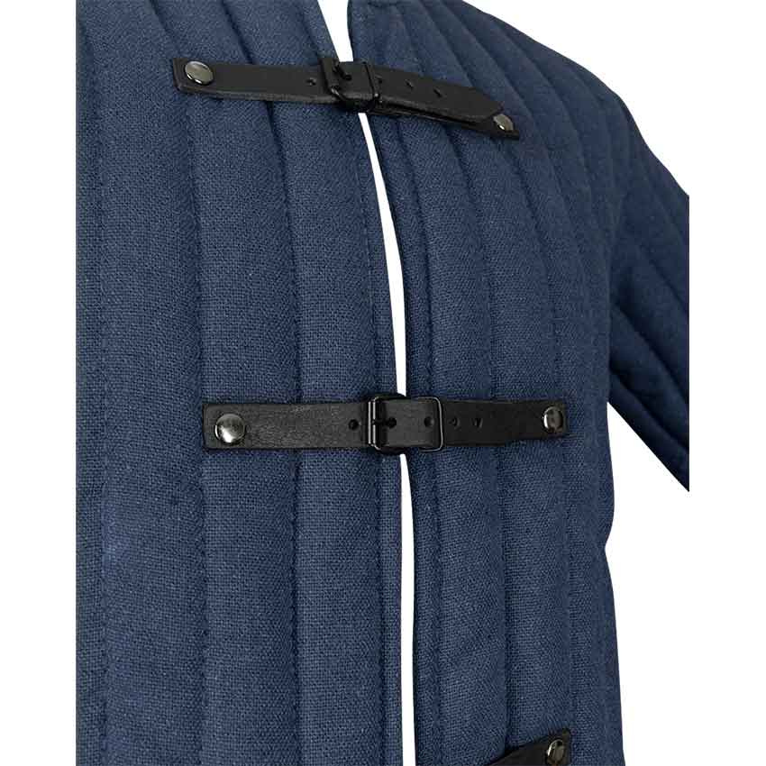 Przeszywanica marki Mytholon zaprojektowana z myślą o larpach. Dzięki użyciu poliestrowego wypełnienia jest znacznie lżejsza i mniej sztywna od historycznych odpowiedników, przez co lepiej dopasowuje się do sylwetki i jest wygodniejsza do noszenia. Szyta maszynowo z zachowaniem średniowiecznej stylistyki. Wymiary mogą się różnić o +/-2cm, ze względu na rzemieślniczy charakter wykonania produktu.