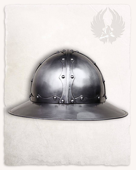 - Hełm: polerowana stal. W środku malowany na czarno.