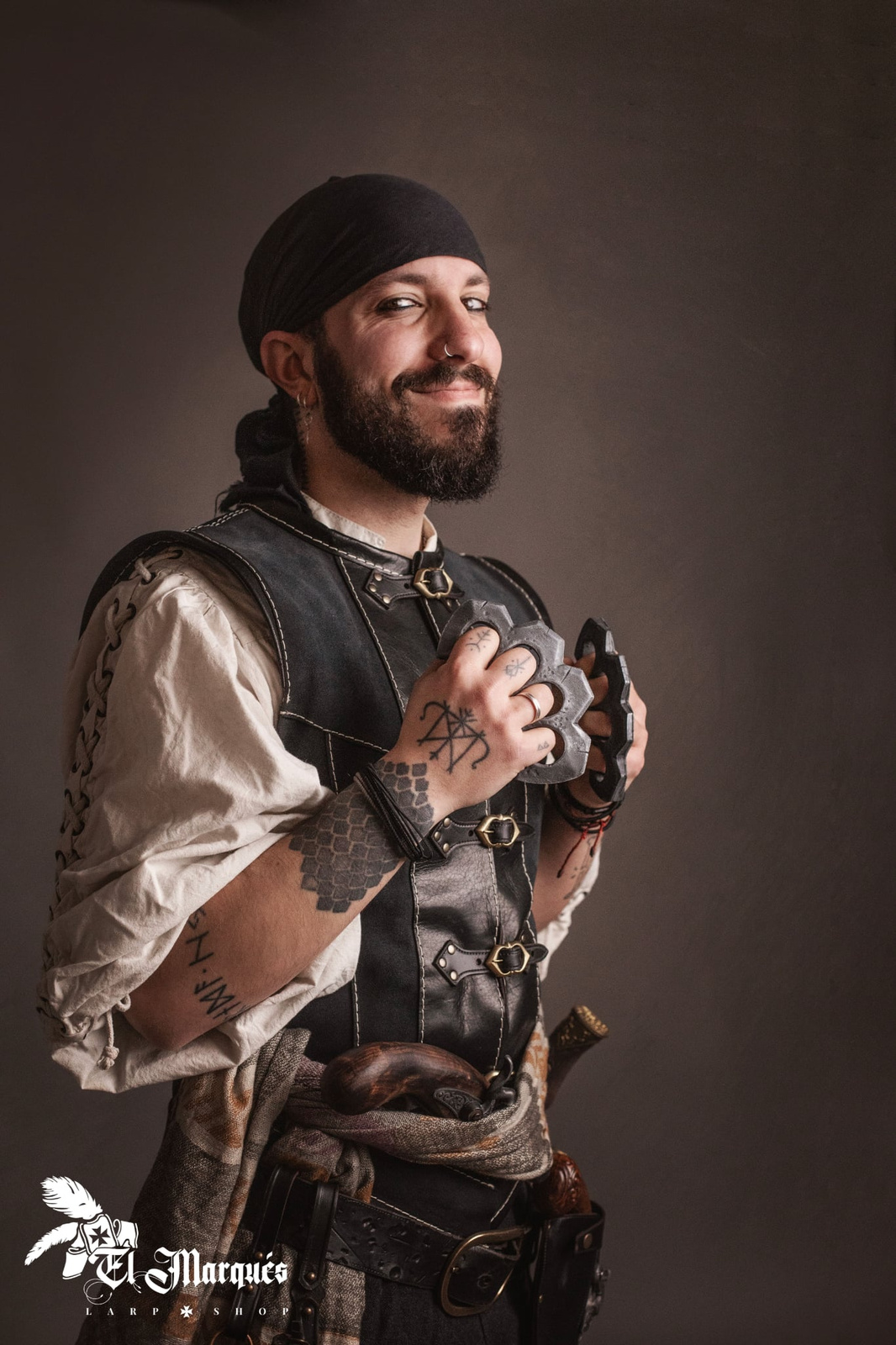Te piankowe kastety to idealny wybór dla rzezimieszków, zbirów i karczemnych zawadiaków, którzy chcą dodać swojej postaci nieco groźniejszego wyglądu — bez ryzyka kontuzji na sesji czy evencie. Wykonane z wysokiej gęstości pianki, kastety te są lekkie, elastyczne i w pełni bezpieczne w użyciu. Nadają się zarówno do scenek odgrywania ról, jak i do rzucania — jeśli Twoja postać woli przemawiać językiem pięści zamiast słów.