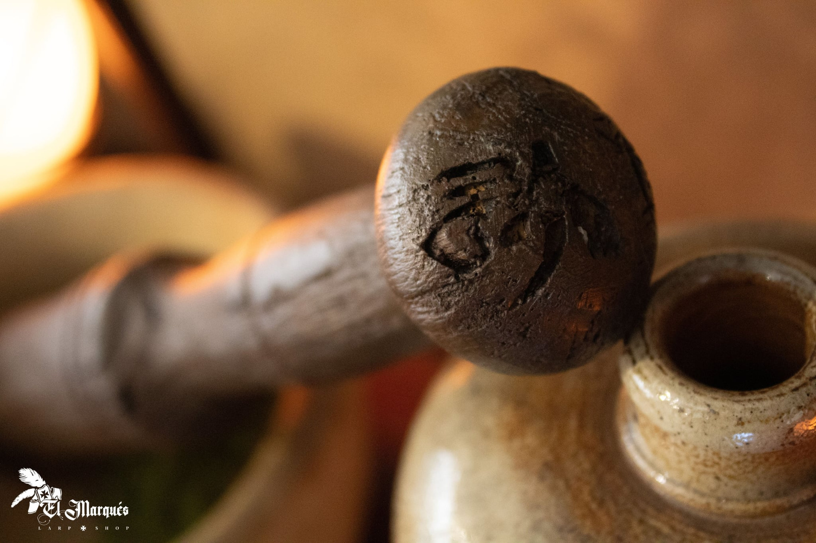 Nie każdy bohater nosi miecz. Czasem wystarczy tłuczek – porządny, drewniany (a przynajmniej na taki wyglądający), z którym równie dobrze można rozgniatać zioła, jak i odstraszać nieproszonych gości przy ognisku. Ten rekwizyt, wykonany z bezpiecznej pianki poliuretanowej o wysokiej gęstości, został zaprojektowany z myślą o larpach, scenach komediowych i niespodziewanych bójkach w karczmie.