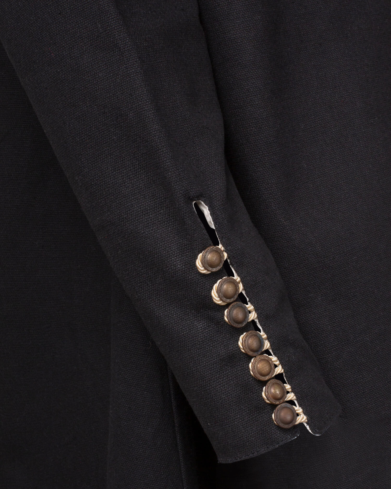 - Zapięcie na ozdobne mosiężne guziki i pętelki.