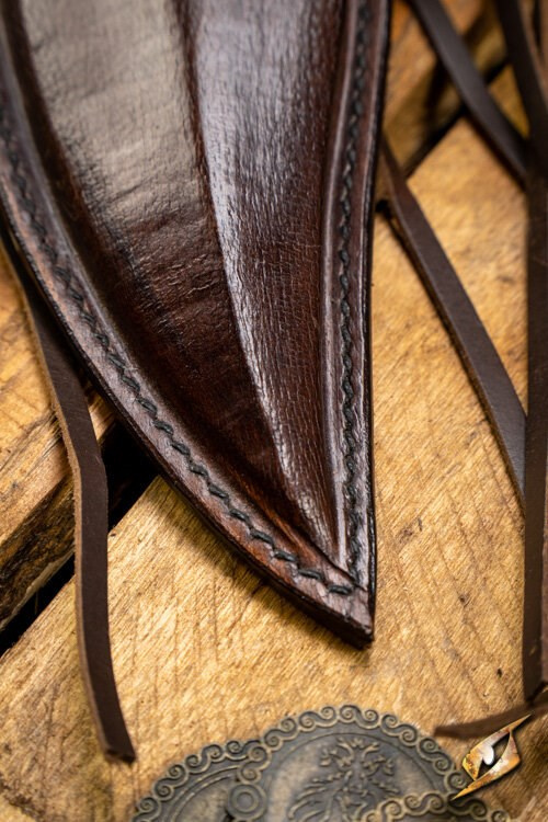 Sztylet larpowy wykonany w technologii broni bezpiecznej. Broń bezrdzeniowa, wykonana z pianki poliuretanowej (PU). W komplecie z profilowaną skórzaną pochwą, zapinaną na mosiężny pin.