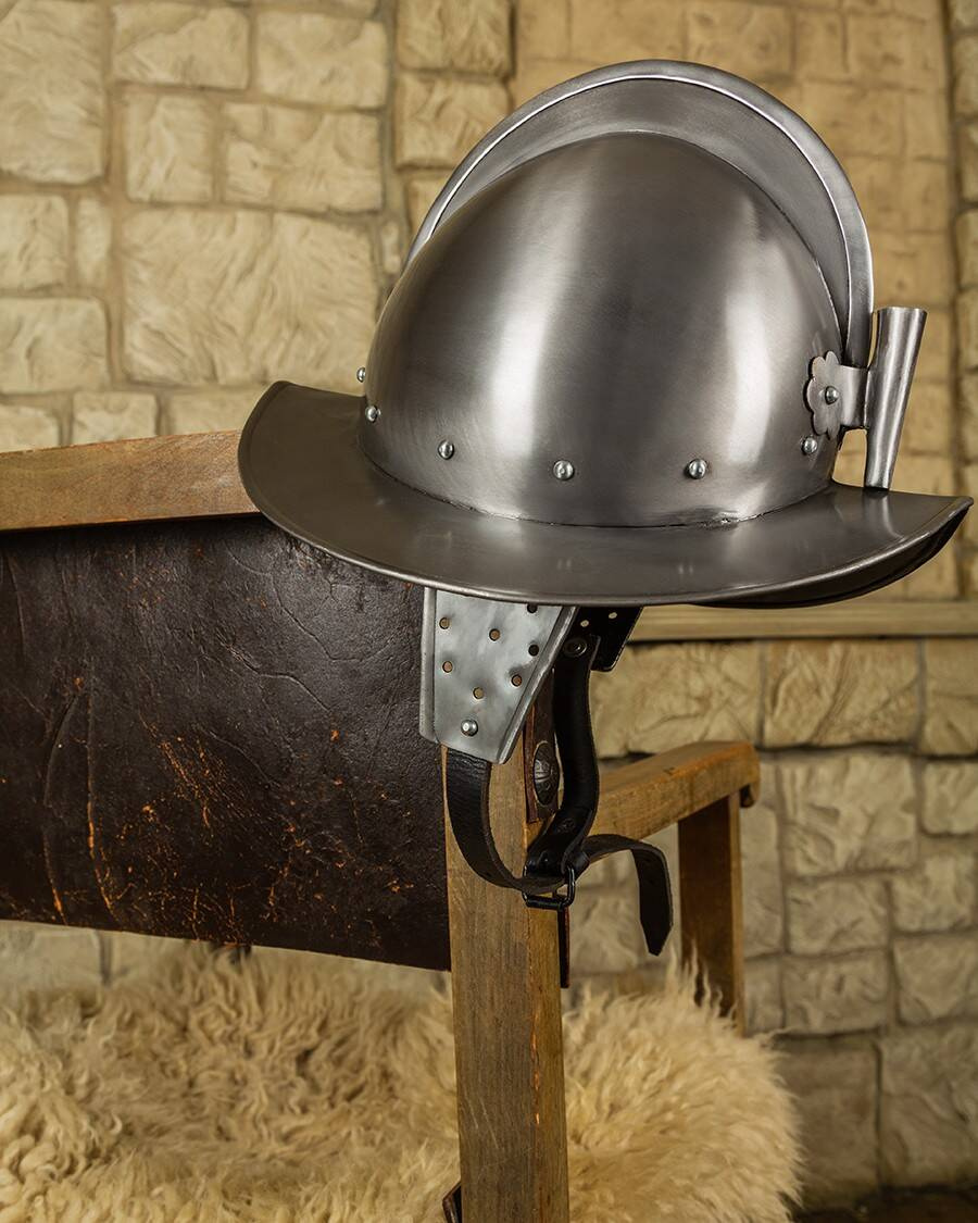 - Hełm: polerowana stal. W środku malowany na czarno.
