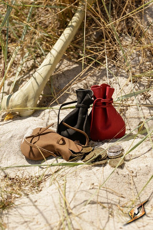 Woreczek zamykany jest skórzanym rzemykiem, dzięki czemu możesz bez obaw ruszać do bitwy, przemykać zaułkami miasta czy zwyczajnie liczyć zdobycze w karczmie – wszystko pozostanie na swoim miejscu. Jego prosty design sprawia, że pasuje zarówno do stroju pirata, kupca, barda, jak i zwykłego podróżnika.