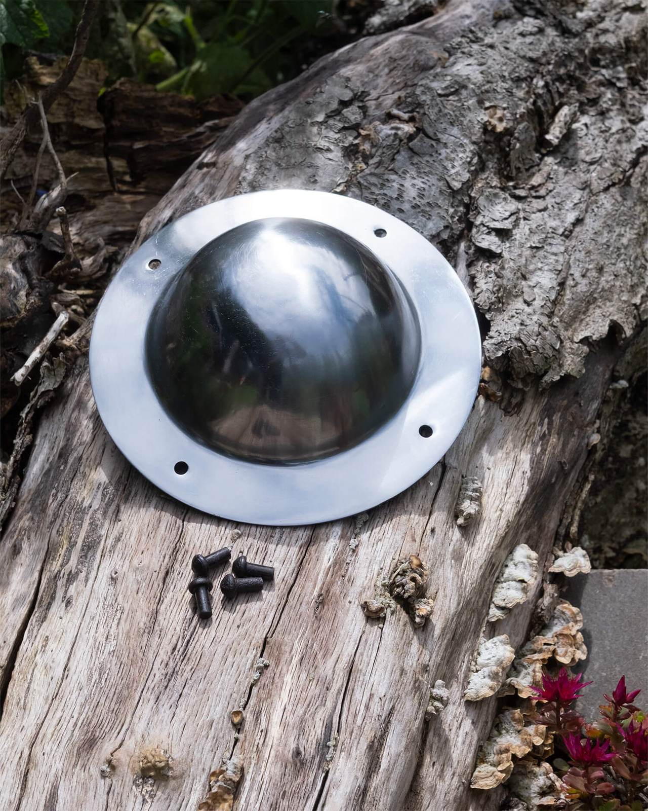 Umbo to klasyczny element niezbędny przy konstruowaniu własnej okrągłej tarczy. Wykonany z wytrzymałej stali o grubości 2 mm, zapewnia odpowiednią ochronę dłoni przed uderzeniami, jednocześnie nadając tarczy historyczny i realistyczny wygląd.