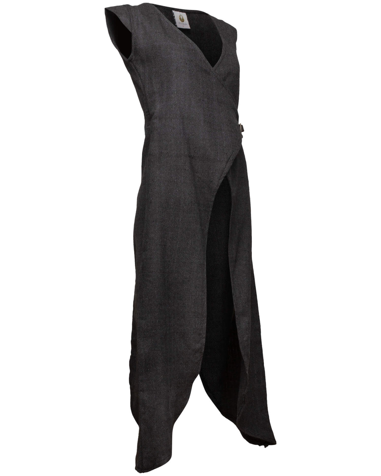 - Vysera Overdress to stylowa suknia wierzchnia z rozcięciami z przodu i z tyłu, zapinana na sprzączkę z boku. Wykonana z trwałej tkaniny o splocie jodełkowym, idealnie łączy elegancję i funkcjonalność.